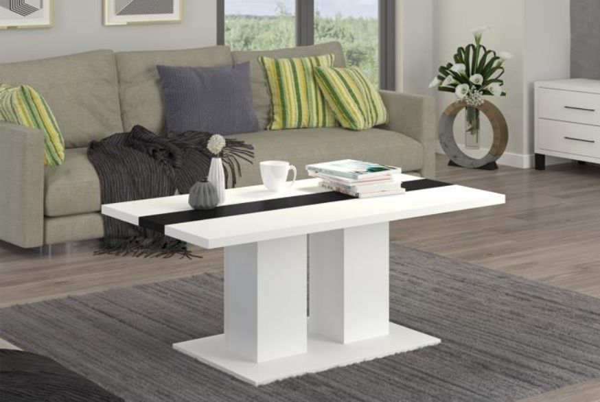 Konferenční stolek BOSSTON WH10 - je moderní konferenční stolek vhodný do každého interiéru. Stolek je vyroben z odolného lamina s ABS hranou. Barevné provedení stolku je bílé v kombinaci s černou.