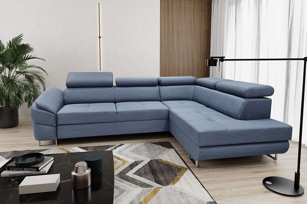 Rozkládací rohová sedací souprava SARDINIE je elegantní a tvarově zajímavý nábytek, který zaujme svým vzhledem. Má krásné provedení a přináší nový lesk moderního designu pro váš interiér. Majitelé těchto sedaček u nich ocení zejména jejich výbornou povrchovou úpravu a maximální pohodlí díky masivním bokům a širokému sedu. Výplň sedáku tvoří vysoce kvalitní PUR pěna položená na pružinách Faliste, tím je zajištěna vysoká životnost sedací soupravy. Konstrukce sedačky je vyrobena v kombinaci dřevotřísky a masivního dřeva a je ideální pro obývací pokoj jako domácí centrum pro odpočinek a relaxaci. Náleží k ní velký výběr potahových materiálů včetně omyvatelných. Vybraný potahový materiál uveďte při objednávce do poznámky, popřípadě nás kontaktujte. Vzorník pro výběr potahu sedaček je k dispozici i na prodejně. Rohovka je rozkládací na velikost spacího lůžka 125 x 200 cm. Je polohovatelná, má úložný prostor, který je vhodný na uschování peřin či dek a nebo jiných předmětů.