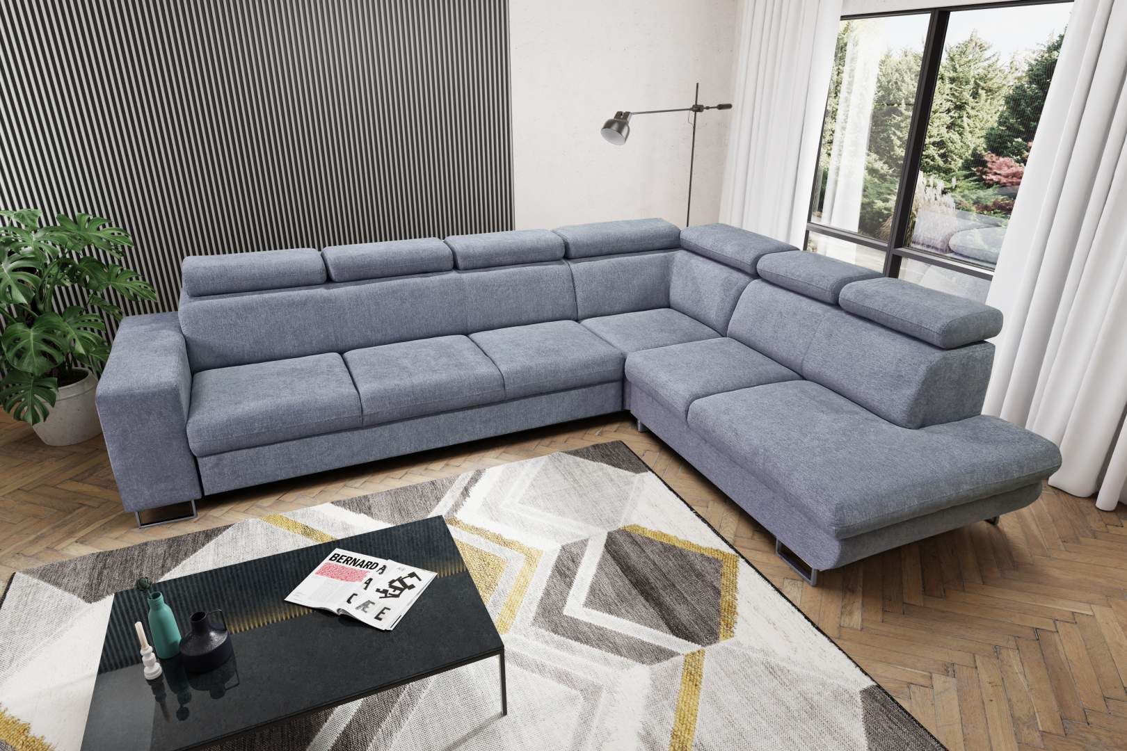 Rozkládací rohová sedací souprava DOVER je elegantní a tvarově zajímavý nábytek, který zaujme svým vzhledem. Má krásné provedení a přináší nový lesk moderního designu pro váš interiér. Majitelé těchto sedaček u nich ocení zejména jejich výbornou povrchovou úpravu a maximální pohodlí díky masivním bokům a širokému sedu. Výplň sedáku tvoří vysoce kvalitní PUR pěna položená na pružinách Faliste, tím je zajištěna vysoká životnost sedací soupravy. Konstrukce sedačky je vyrobena v kombinaci dřevotřísky a masivního dřeva a je ideální pro obývací pokoj jako domácí centrum pro odpočinek a relaxaci. Náleží k ní velký výběr potahových materiálů včetně omyvatelných. Vybraný potahový materiál uveďte při objednávce do poznámky, popřípadě nás kontaktujte. Vzorník pro výběr potahu sedaček je k dispozici i na prodejně. Rohovka je rozkládací na velikost spacího lůžka 127 x 240 cm. Je polohovatelná, má úložný prostor, který je vhodný na uschování peřin či dek a nebo jiných předmětů.