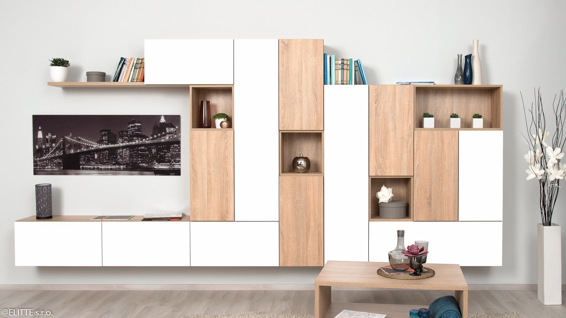 Elegantní sestava do velkého obývacího pokoje v moderním barevném provedení. Obývací pokoj je kvalitní Slovenský nábytek vyráběný společností DREVONA. Moderní obývací sestava má ideální proporce a proto se hodí do každého prostoru. REA REBECCA je určena do obývacího pokoje a poskytuje spoustu úložného řešení ve spodní i vrchní části sestavy. Spodní skříňky a také horní skříňky je možné v obývacím pokoji umístit dle vlastního uvážení a potřeby, případně je lze doplnit o další skříňky , vitríny a knihovny ze sektorového nábytku REA REBECCA.