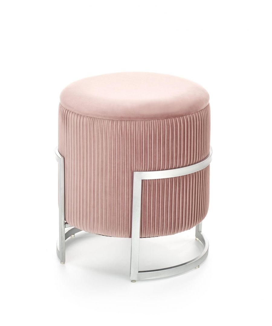 CRICKET je praktický taburet na chromované podnoži s úložným prostorem. Taburet je očalouněn v kvalitní velvet tkaniněi v moderních barvách: růžová a šedá. Díky svému jednoduchému designu je taburet vhodný do většiny interiérů. Tento praktický bytový taburet vám umožní nejen se pohodlně usadit, ale zároveň slouží jako doplněk domácnosti. Podnožka nebo taburet je určen nejen na podepření nohou, ale také poslouží jako praktický stolek na uložení knih a časopisů. Konstrukci taburetu tvoří korpus z kvalitního masivu v kombinaci s dřevotřískou. Výplně sedáku tvoří středně tvrdé molitanové pěny. Díky univerzálnímu kulatému tvaru se skvěle hodí ke každému typu sedací soupravy a zároveň díky optimálním rozměrům ho lze umístit i do menší místnosti nebo interiéru.