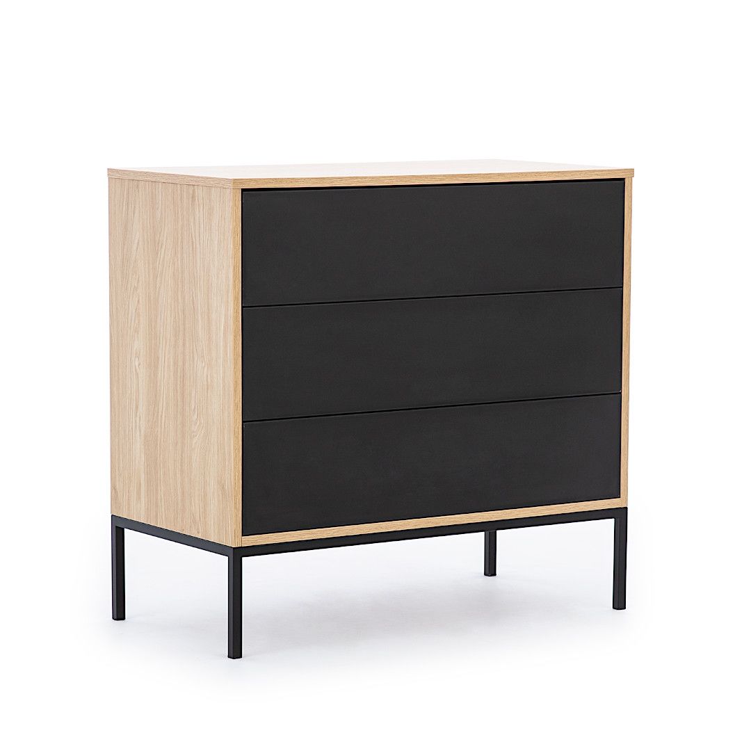 Komoda BLACK LOOFT 3S Vám poslouží jako odkladné místo i jako úložný prostor pro všechny předměty. Je to luxusní, originální a elegantní komoda s kvalitní povrchovou úpravou a krásnými liniemi. Zaujme především svými propracovanými a krásnými liniemi. Majitelé této komody jistě ocení atraktivní design do každého interiéru. Vyrábí se v barevném provedení černý / dub olejový v kombinaci s černým lakovaným kovovým rámem, jež dodává tomuto nábytku moderní, atraktivní a nevšední design. Komoda prakticky kombinuje tři šuplíky tak, aby bylo možné všechny Vaše předměty umístit do nejvhodnějšího úložného prostoru. Komodu je možné zakoupit samostatně nebo v doporučeném nábytkovém systému BLACK LOOFT. Systém BLACK LOOFT obsahuje další komponenty, které lze spolu libovolně kombinovat, jelikož jde o sektorový nábytek. Díky této vlastnosti si tak můžete sestavit nábytek v jakékoliv místnosti v bytě či domě podle sebe. Komoda BLACK LOOFT je určena do každého moderního interiéru.