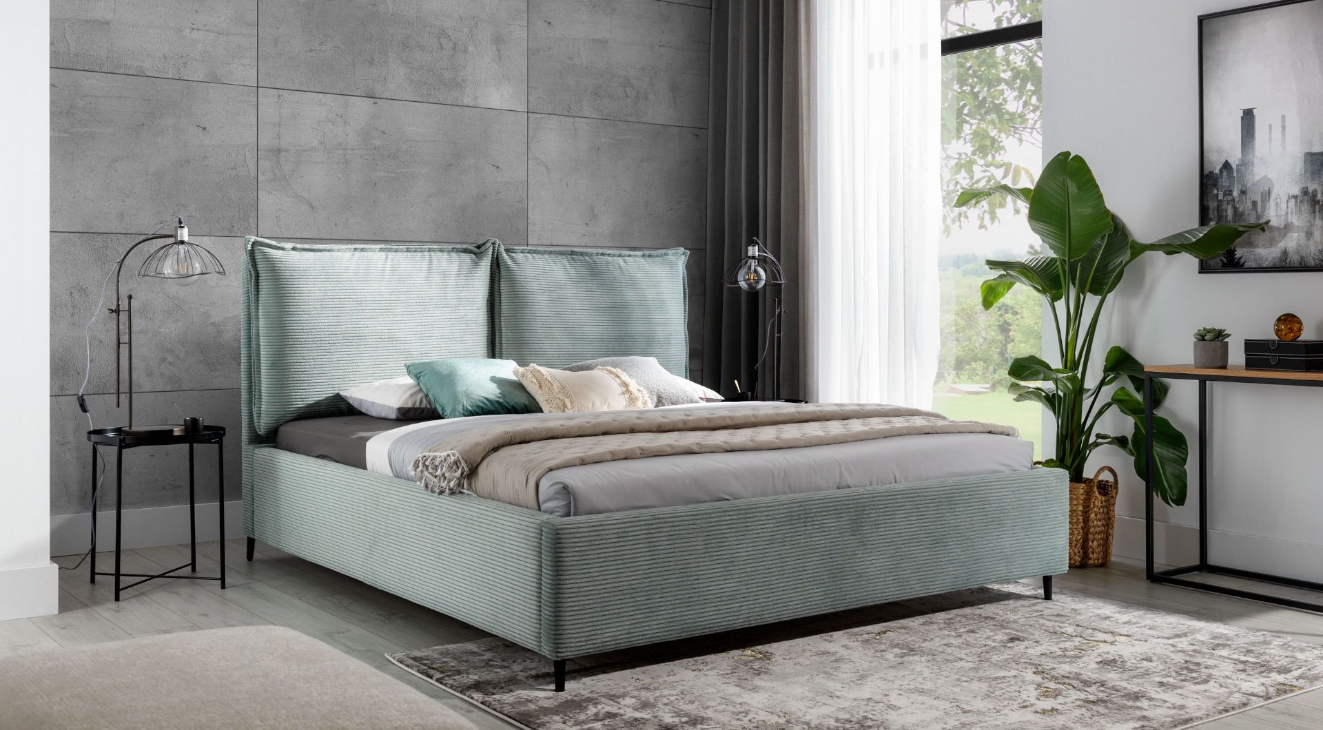- je luxusní čalouněná postel vyrobená z lamina a čalouněná v různých potahových materiálech. V nabídce lůžka 140, 160 a 180 x 200 cm. Možnost úložného prostoru.
