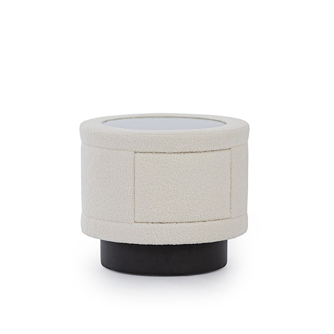 Noční stolek Nello - je elegantní čalouněný noční stolek se skleněnou deskou. Nabízíme široký výběr potahových látek včetně omyvatelných.