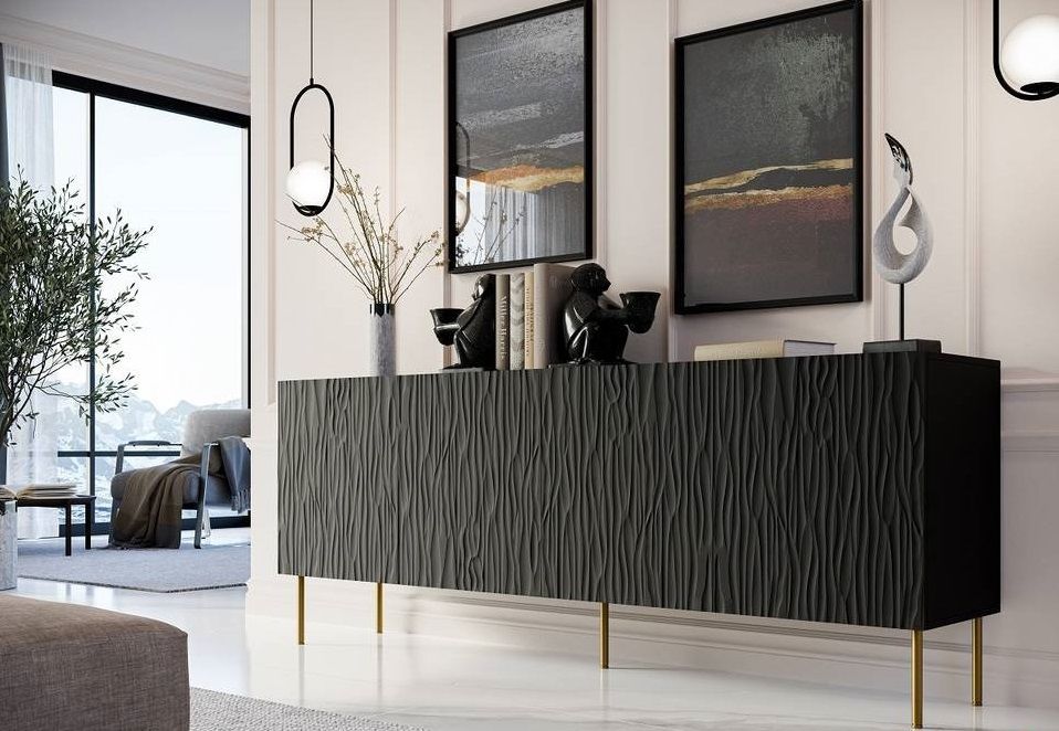Komoda Jangle 190 - je moderní prostorná komoda s dostatkem úložného prostoru pro vaše věci. Dodá vašemu interiéru krásný moderní vzhled. Tato komoda je dostupná v barevném provedení bílá mat, černá mat a dub wotan s krásným rýhovaným 3D efektem MDF desky.