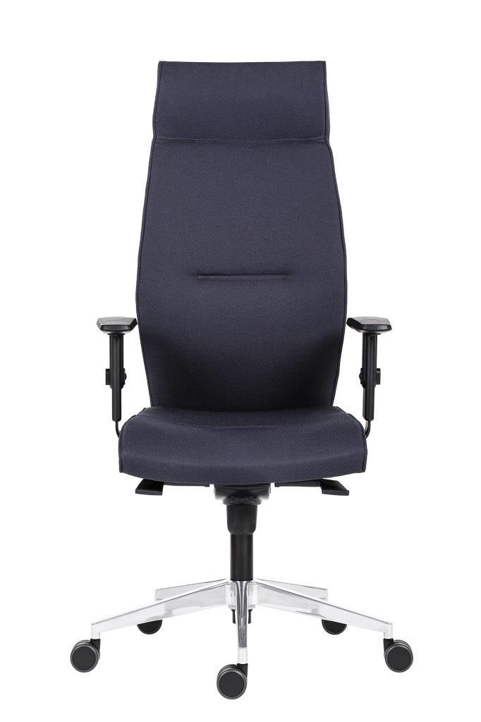 Křeslo pro intenzivní používání 24 HR, extra vysoký opěrák a opěrka hlavy, negativní - dopředný náklon sedáku pro zlepšení krevního oběhu, na sedáku a opěráku použit materiál studená pěna - velmi odolný materiál používaný v automobilovém průmyslu, synchronní mechanismus s pětinásobnou aretací, nastavení síly protiváhy v rozpětí hmotnosti 60 - 130 kg, kolečka Ø 60 mm s gumovou obručí pro všechny typy podlah, výškově nastavitelné područky s měkkou dotykovou plochou, výškové nastavení sedáku plynovým pístem, možnost volby hloubky sedáku jednoduchou montáží ve 2 polohách, potah s vysokou odolností (Bondai nebo XTreme, s velkým výběrem barevností), snadné čištění šampónováním nebo tepováním, aluminiová leštěná báze, platnost záruky je podmíněna provedením pravidelné, velmi snadné údržby - promazání pístnice a dotažení spojů, součástí balení je mazací tuk a klíč na dotažení, český výrobek.