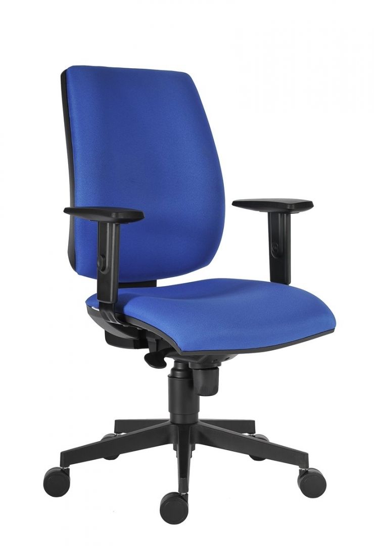 Moderní kancelářská židle pro široké použití, SYN - synchronní mechanismus, pětinásobná aretace, s možností plynulé proměny úhlu sedáku a opěráku, nastavení tuhosti mechanismu podle tělesné hmotnosti uživatele, ASYN - asynchronní mechanismus, nezávislé nastavení úhlu sedáku a opěráku s možností aretace v libovolné pozici, nastavení výšky opěráku mechanismem up-down (systém svislého nastavení opěráku bez použití ovládacích prvků), možnost doplnění mechanismu SL k nastavení hloubky sedáku, moderní plastová báze, kolečka Ø 60 mm pro měkké podlahy, volitelné područky, český výrobek.