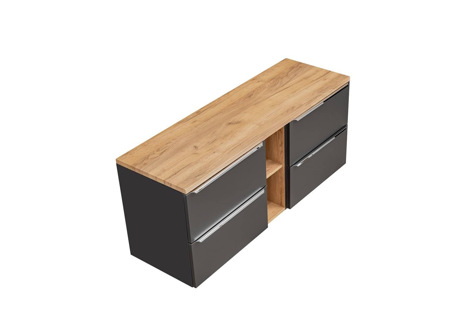 Sestava Kapri Cosmos je moderní nabídkou pro všechny koupelny. Nábytek má tichý uzavírací systém. Barevné provedení korpus - Černý mat, dvířka - Černý mat, vnitřní dekor - Dub Craft zlatý