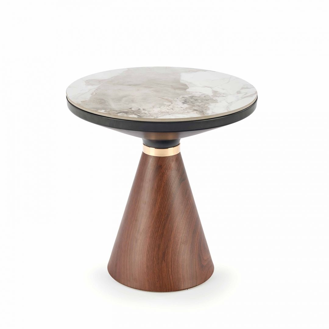 Konferenční stolek nadčasového designu. Stolek je vyroben v kombinaci mramorové bílé keramické desky a nohy v hnědo zlaté barvě. Tento moderní konferenční stolek je vhodný do stylových interiérů, obývacích pokojů nebo pracoven. K tomuto stolku je možné dokoupit ještě druhý kus GENESIS, kterým tak vytvoříte ideální sadu konferenčních stolků.