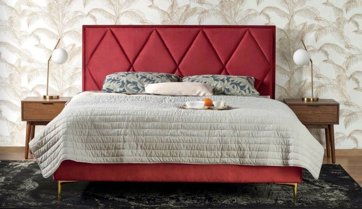 Manželská postel MODULO 160 - je moderní čalouněná manželská postel čalouněna v sametové látce v oblíbené béžové, šedé, tmavě zelené, bordó nebo hořčicové barvě. Rozměr lůžka: 160 x 200 cm. V nabídce je 6 druhů prošívaných čel a 3 barevné odstíny kovových nohou.
