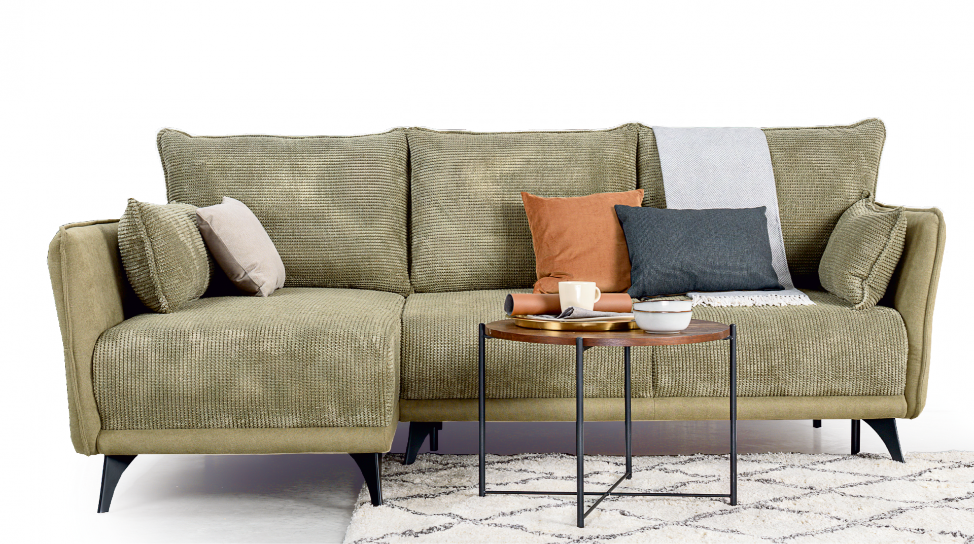 Moderní rozkládací rohová sedací souprava je určena do obývacího pokoje. Tato moderní polštářová sedčka poskytuje velké pohodlí a zkládací lůžko o rozměru 125 x 210 cm. Kostra pohovky je vyrobena z masivu buku, smrku, DTD, výplň sedáků tvoří kvalitní PUR pěna s hustotou T3037na vlnovcové pružině. Polštáře jsou z molitanové drti 70% a silikonové kuličky 30%. Konstrukce područek je kovová.