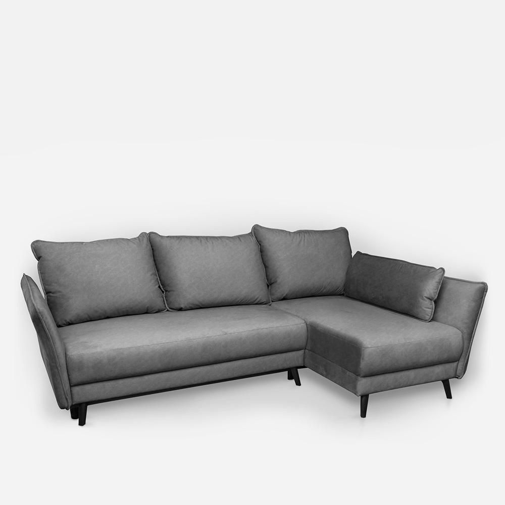 Moderní rozkládací rohová sedací souprava je určena do obývacího pokoje. Tato moderní polštářová sedčka poskytuje velké pohodlí a zkládací lůžko o rozměru 125 x 210 cm. Kostra pohovky je vyrobena z masivu buku, smrku, DTD, výplň sedáků tvoří kvalitní PUR pěna s hustotou T3037 na vlnovcové pružině. Polštáře jsou z molitanové drti 70% a silikonové kuličky 30%. Konstrukce područek je kovová.