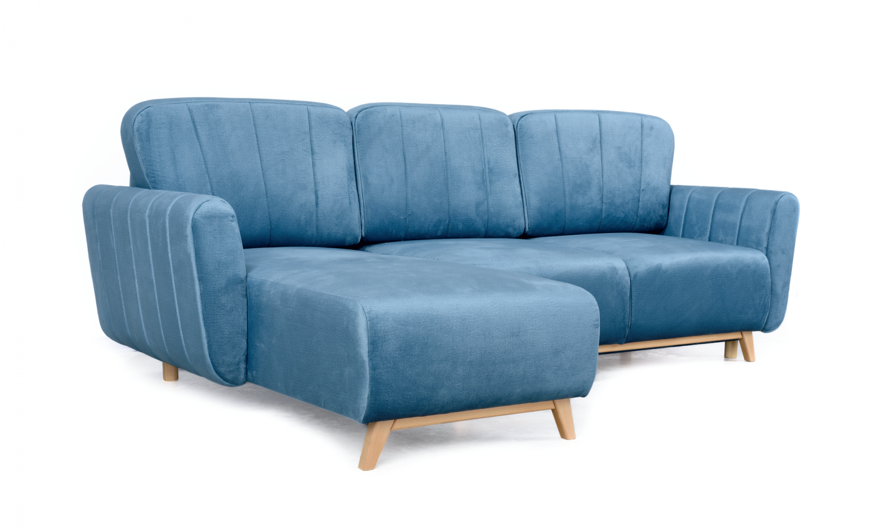 Moderní rozkládací rohová sedací souprava je určena do obývacího pokoje. Tato moderní polštářová sedačka poskytuje velké pohodlí a zkládací lůžko o rozměru 125 x 210 cm. Kostra pohovky je vyrobena z masivu buku, smrku, DTD, výplň sedáků tvoří kvalitní PUR pěna s hustotou T3037na vlnovcové pružině. Polštáře jsou z molitanové drti 70% a silikonové kuličky 30%. Sedací souprava je ozdobená dřevěnou lištou podél celé přední části sedačky. Je to jedinečný design, který spojuje moderní styl s retro prvky.