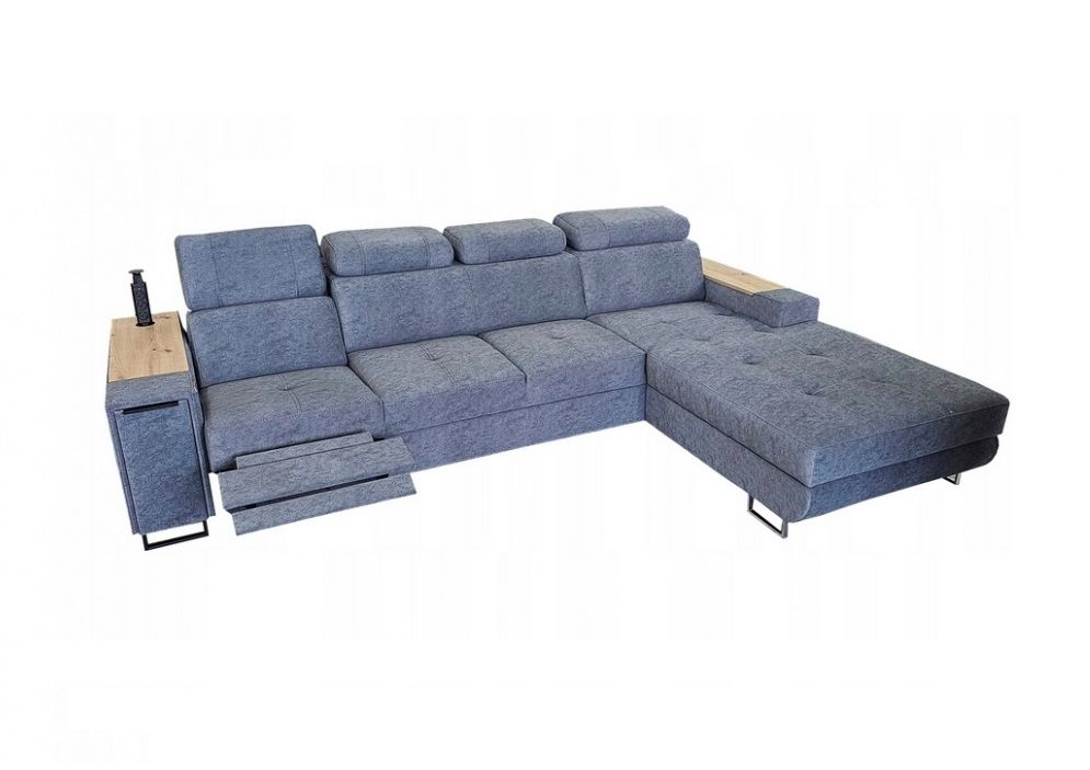 Rozkládací rohová sedací souprava SEVIL III je elegantní a tvarově zajímavý nábytek, který zaujme svým vzhledem. Má krásné provedení a přináší nový lesk moderního designu pro váš interiér. Majitelé těchto sedaček u nich ocení zejména jejich výbornou povrchovou úpravu a maximální pohodlí díky masivním bokům a širokému sedu. Výplň sedáku tvoří vysoce kvalitní PUR pěna položená na pružinách Falista, tím je zajištěna vysoká životnost sedací soupravy. Konstrukce sedačky je vyrobena v kombinaci dřevotřísky a masivního dřeva a je ideální pro obývací pokoj jako domácí centrum pro odpočinek a relaxaci. Náleží k ní velký výběr potahových materiálů včetně omyvatelných. Vybraný potahový materiál uveďte při objednávce do poznámky, popřípadě nás kontaktujte. Vzorník pro výběr potahu sedaček je k dispozici i na prodejně. Rohovka je rozkládací na velikost spacího lůžka 126 x 273 cm. Je polohovatelná, má úložný prostor, který je vhodný na uschování peřin či dek a nebo jiných předmětů. Součástí sedací soupravy je multifunkční područka s výsuvným barovým stolkem, držákem na nápoje a výsuvnou lištou se zásuvkami, které slouží jako dobíjecí stanice na mobil nebo notebook.