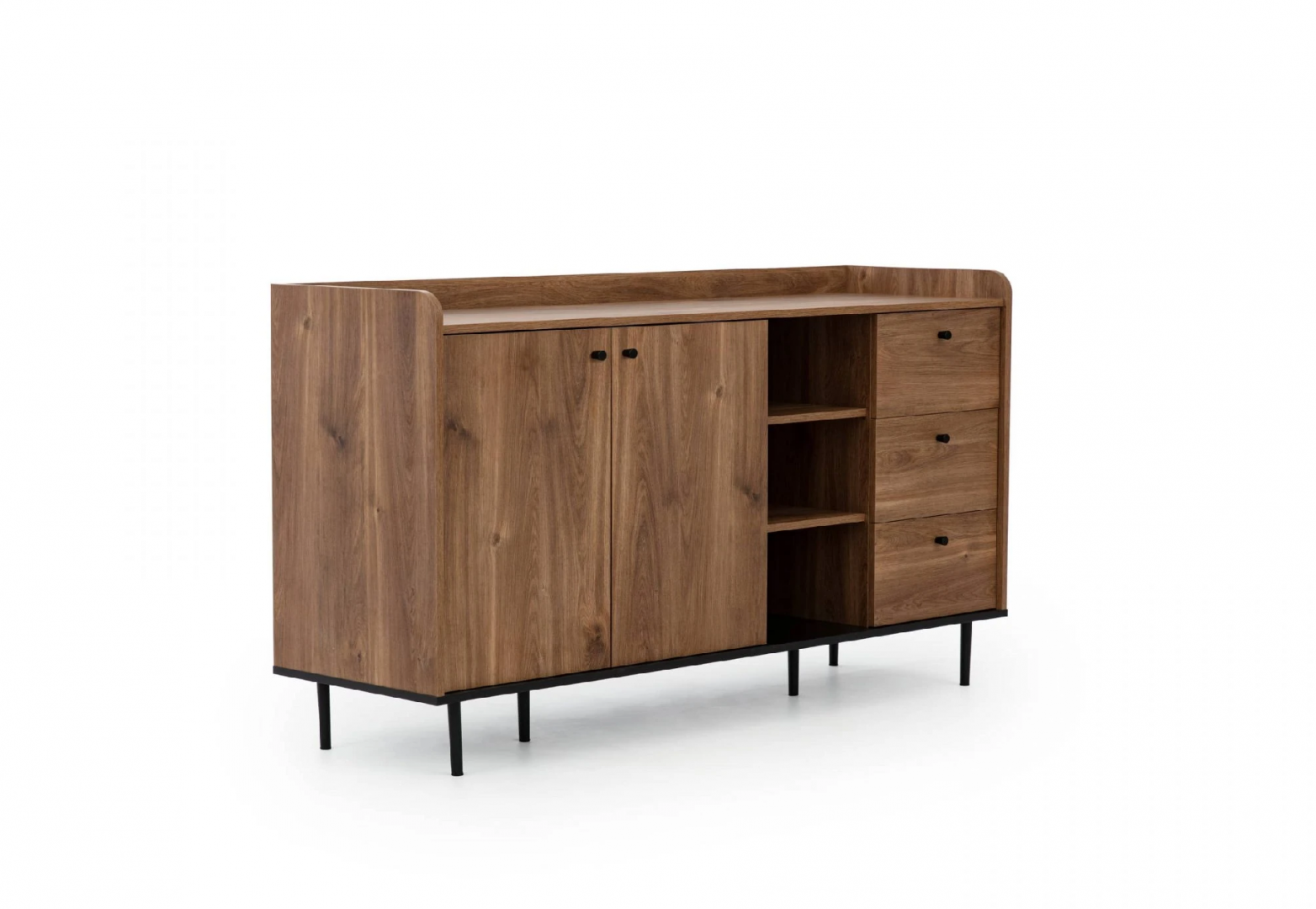 Vyzkoušejte originalitu s precizním řemeslným zpracováním v podobě moderní komody. Tato kombinovaná komoda je díky své prostornosti a množství úložného prostoru praktickým pomocníkem v každé domácnosti. Stylová komoda dodá vašemu interiéru zajímavý vzhled a zaslouženou pozornost. Díky praktickému úložnému prostoru budete mít vše přehledně uspořádané. Tato kombinovaná komoda je vyrobena z lamina a společně s kovovými nožkami a poskytuje nábytku dostatečnou pevnost a stabilitu. Tento materiál je stálobarevný a odolný vůči mechanickému poškození, což zaručuje dlouhou životnost nábytku. Komoda je dostupná v oblíbeném barevném dekoru Brandy Castello s černými kovovými nožičkami.