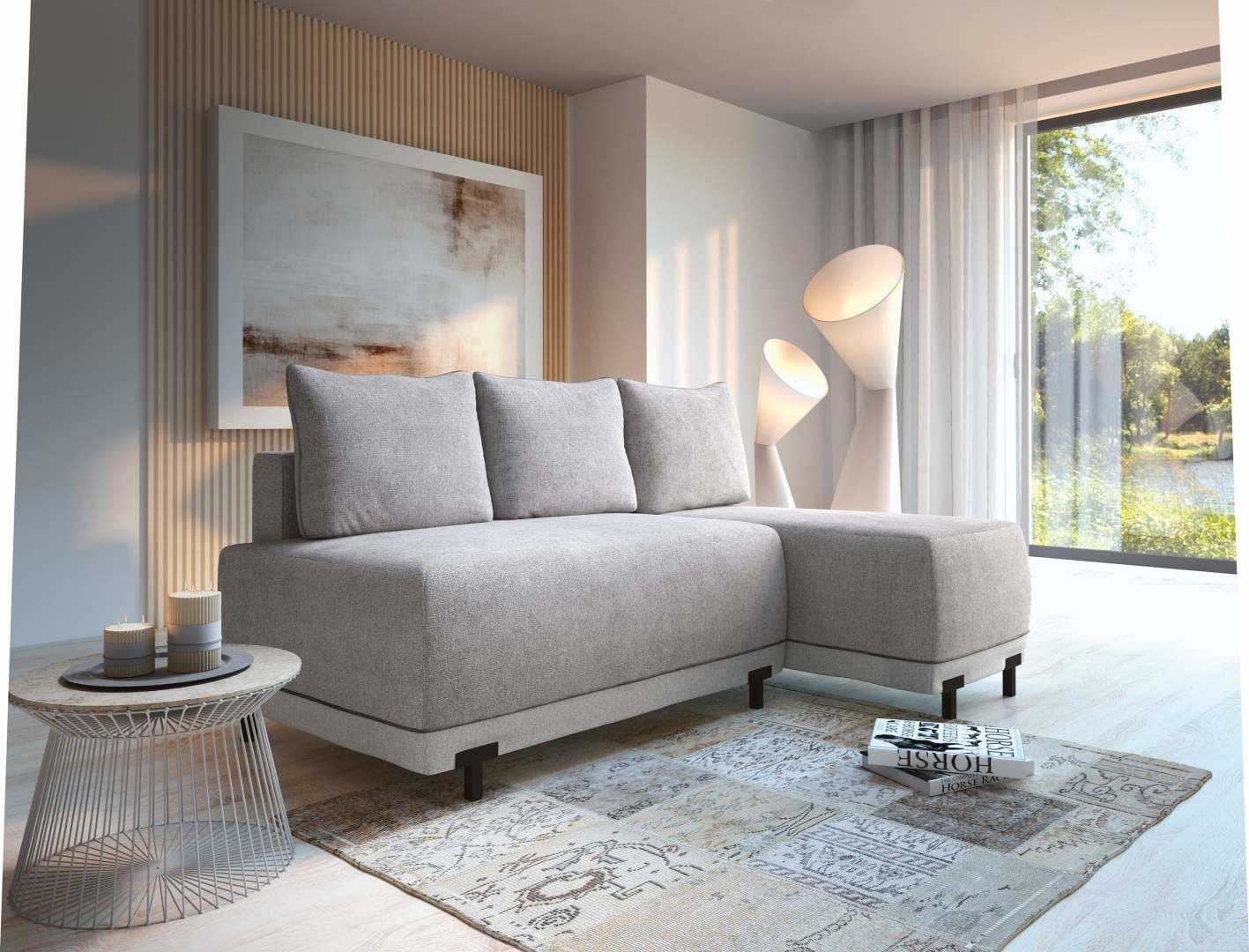 - moderní pohodlná sedací souprava na kovových nohách s úložným prostorem a rozkladem na lůžko 145 x 197 cm. Jednoduchá a elegantní sedací souprava menších rozměrů.