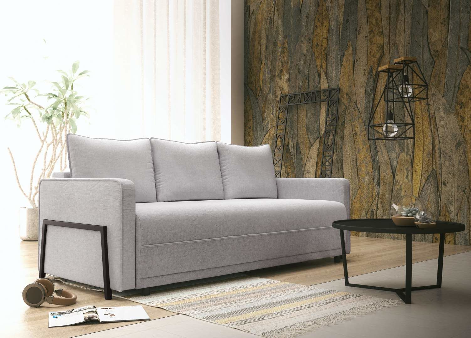 - je moderní pohodlná pohovka na kovových nohách s rozkladem na lůžko 198 x 149 cm a úložným prostorem. Velký výběr potahových látek včetně omyvatelných.