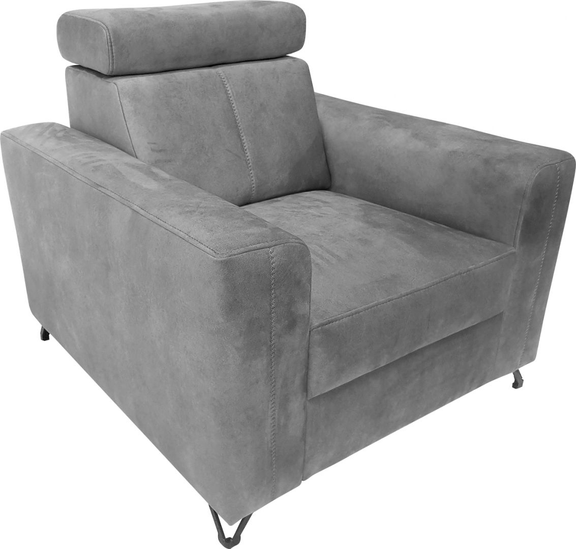 Moderní, pohodlné křeslo, které sleduje nejnovější trendy v designu čalouněného nábytku. Křeslo má zajímavé provedení a tvar, zároveň se vyznačuje kvalitou řemeslného zpracování. Kostra je vyrobena z měkkého a tvrdého dřeva a dřevotřísky, což garantuje dlouhou životnost křesla. Výplně sedáku tvoří bonelové a falistové pružiny s čalounickými popruhy s HR pěnou, díky tomuto systému pružin v sedáku a vysokému opěráku je zaručeno pohodlné sezení. Kvalita použitých materiálů zajišťuje pohodlný sed a zvyšuje komfort sezení a kvalitu odpočinku. Ke křeslu náleží také široký výběr potahových materiálů včetně oblíbených omyvatelných látek. Moderní vzhled křesla podtrhují také kovové nohy v černém provedení.