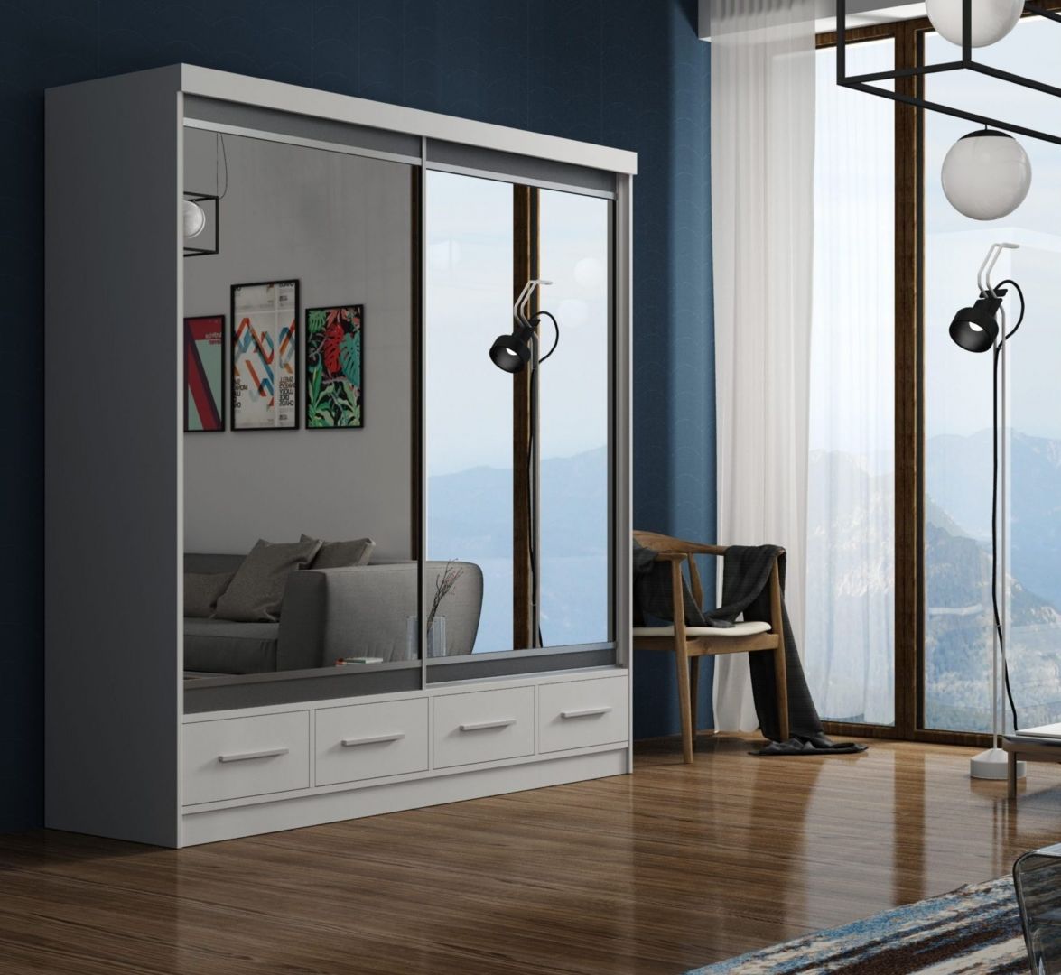 Šatní skříň MARGO 200 - Moderní šatní skříň je vyrobená z lamina s posuvnými dveřmi a tichým dojezdem.