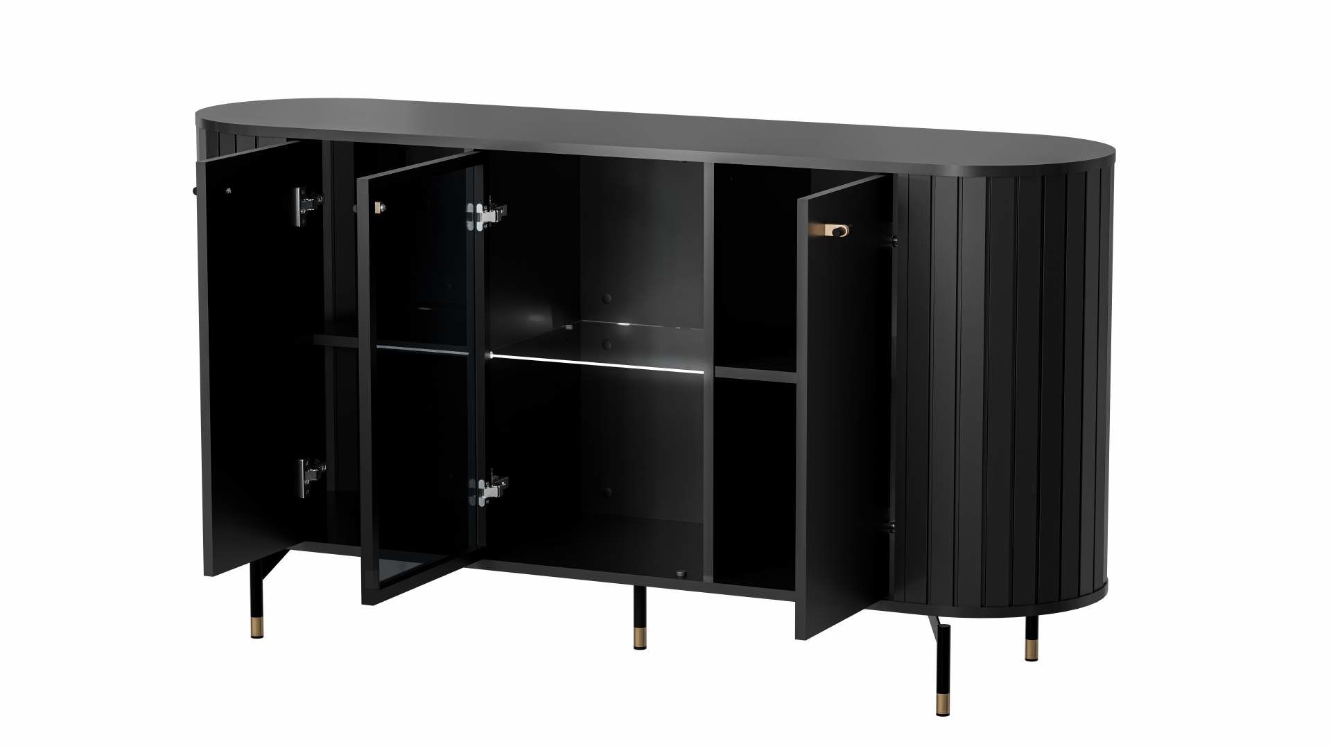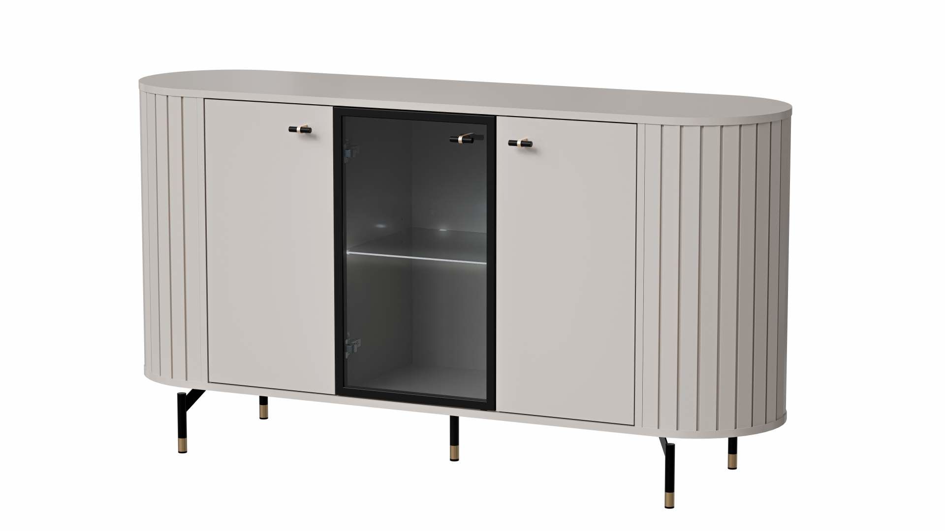 Komoda ZANTE 3 - je moderní prosklená komoda vyrobená v dekorech černý mat a kašmír.