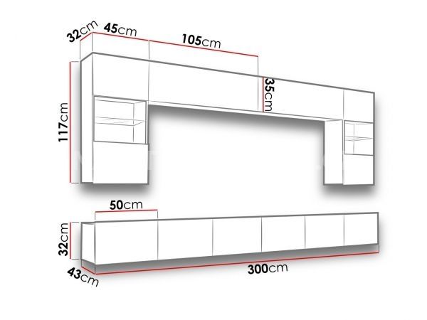 Nábytková sestava je sektorovým nábytkem s množstvím úložného prostoru a prostorných polic. Tento moderní nábytek lze jednoduše doplnit o komody, skřínky a police a vytvořit si tak interiér přesně podle Vašich představ.