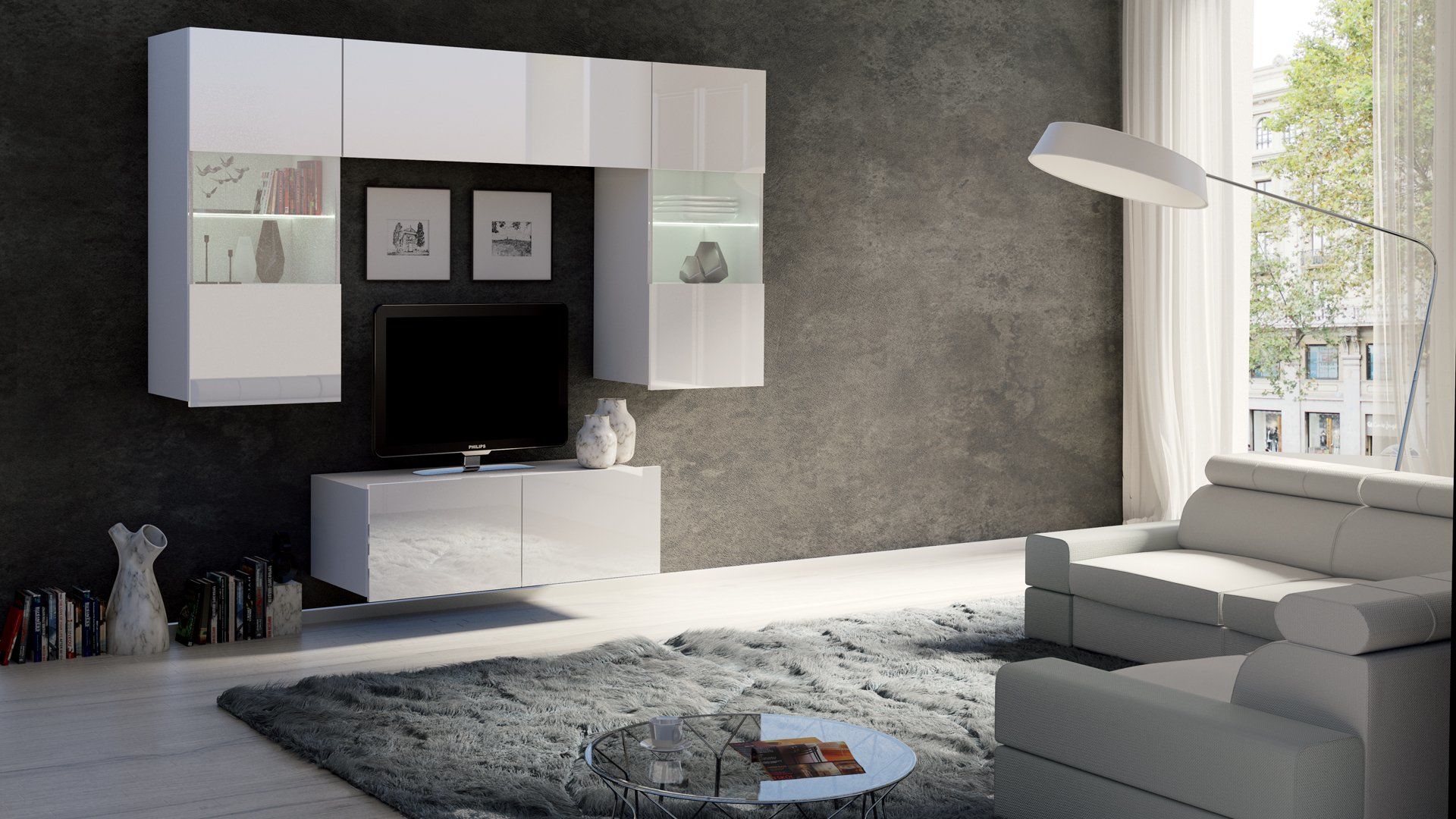 Nábytková sestava je sektorovým nábytkem s množstvím úložného prostoru a prostorných polic. Tento moderní nábytek lze jednoduše doplnit o komody, skřínky a police a vytvořit si tak interiér přesně podle Vašich představ.
