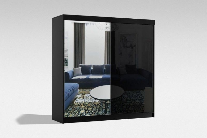 Šatní skříň SAMBA 200 - Moderní šatní skříň je vyrobená z lamina s posuvnými dveřmi a tichým dojezdem. Nábytek je vyrobený v černé nebo v bílé barvě, dveře v lesku, korpus matný, vše se zrcadlem.