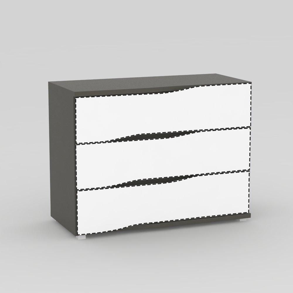 Praktická 3 zásuvková komoda je součástí variabilní nábytkové sestavy REA WAVE. Komoda na první pohled zaujme bez úchytovým provedením dvířek. Je to ideální úložný prostor pro vaše oblečení, příruční věci či vaše osobní poklady. Komoda je vyrobená z kvalitní laminované dřevotřískové desky. V několika odstínech. Buk, navarra, bílá, kašmír, dub bardolino, dub vicenza, dub canyon, graphite, lancelot a ořech rockpile.