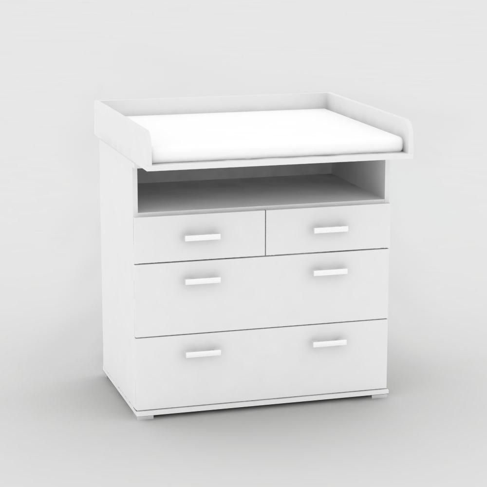 Komoda s přebalovacím pultem je vyrobena z kvalitní laminované dřevotřískové desky tl. 16 mm s ABS hranou 0,5 a 2 mm.