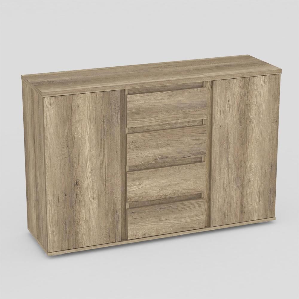 Komoda je vyrobená z kvalitní laminované dřevotřískové desky. V několika odstínech. Buk, bílá, kašmír, dub bardoino,dub canyon, graphite, dub vicenza, lancelot a ořech rockpile.