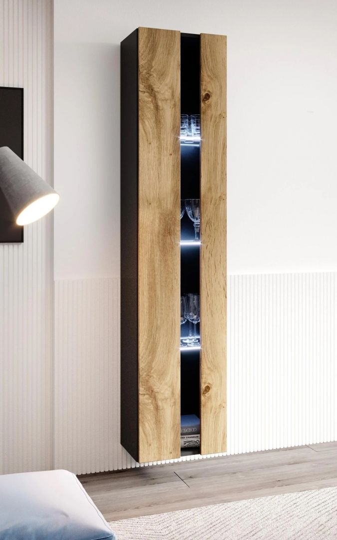 Závěsná vitrína VIGGO - je moderní prostorná komoda s dostatkem úložného prostoru pro vaše věci. K vitríně je možné dokoupit LED osvětlení.