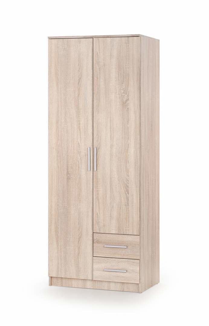 Elegantní , jednoduchá a přitom prostorná šatní skříň, vyniká svou jednoduchostí a má velký úložný prostor. Skříň je vyrobena z vysoce kvalitní MDF. Hrany jsou chráněny ABS páskou. Skříň je navžena ve dvou moderních barevných variantách. Skříň disponuje dvěma dvěmi samostatně otevíracími dveřmi. Ve spodní části jsou dvě samostatné zásuvky na drobnosti.
