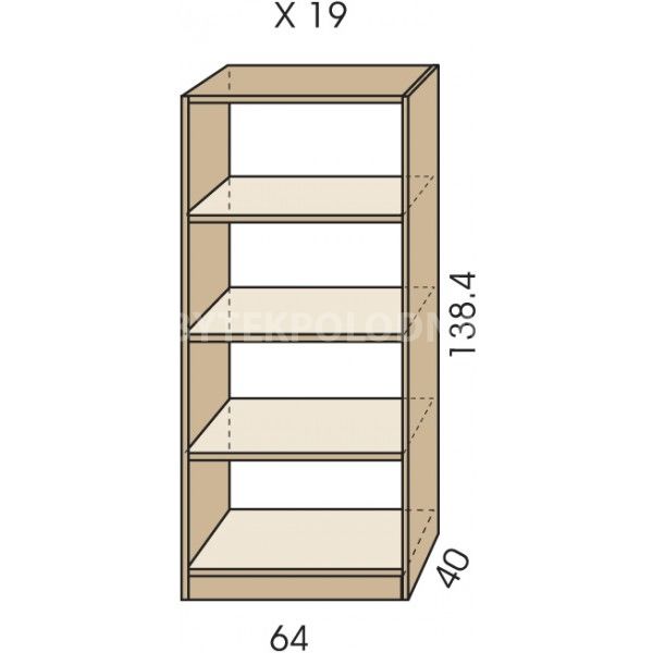 Policový regál X 19 - je praktický regál do dětského pokoje od českého výrobce vyroben z lamina s ABS hranou v 12 barevných dekorech v kombinaci pastelovými barvami.