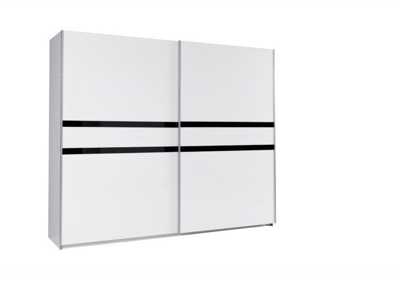 ŠATNÍ SKŘÍŇ LUX XXXIII je vyrobená z lamina tl. 16 mm s ABS hranou v barevné kombinaci: bílý korpus, dveře s bílým leskem a pásky černý lesk. Posuvné dveře s kvalitním Hettich kováním.