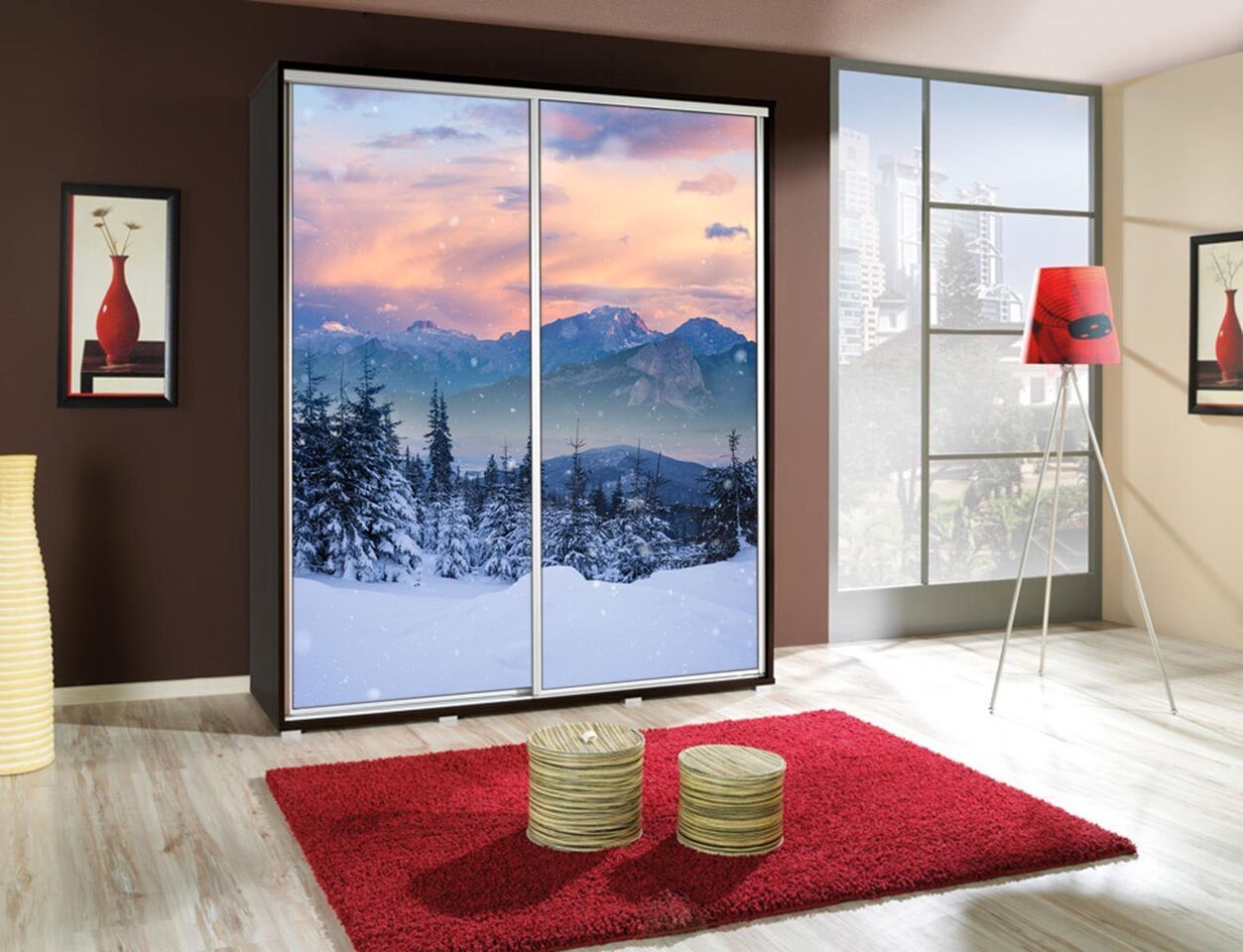 je vyrobená z lamina tl. 22 mm s ABS hranou a posuvnými dveřmi s kováním SEVROLL. Barevné dekory: Bílá, Dub Sonoma, Kaštan Wenge, Švestka Wallis.