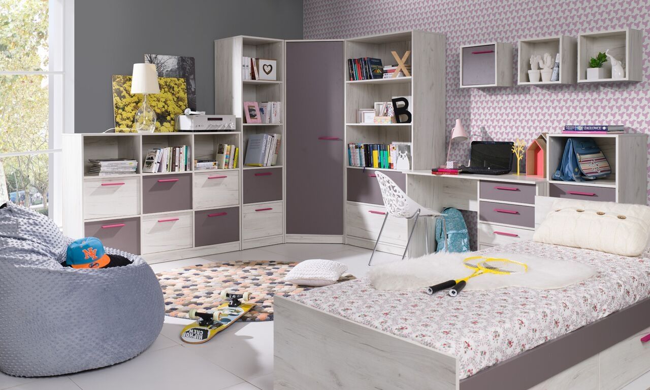 V studentském pokoji nesmí chybět dostatek místa pro spánek a odpočinek. K tomu účelu poslouží kvalitní nábytek a postel s úložným prostorem vyrobena ze zdravotně nezávadného lamina s ABS hranou. Tato sestava do studentského nebo dětského pokoje je ze série RAST. Tento stylový nábytek je vyroben z kvalitní laminované dřevotřísky s odolnou ABS hranou, lamino zajistí optimální nosnost a stabilitu, je stálobarevné, snadno se čistí a je nenáročné na povrchovou údržbu. Díky decentnímu barevnému dekoru bílého dubu v kombinaci s šedou je tento studentský nábytek vhodný pro dívky i chlapce všech věkových skupin. Jemné barevné doplňky ve formě zelených úchytek oživí každý dětský a studentský pokoj.