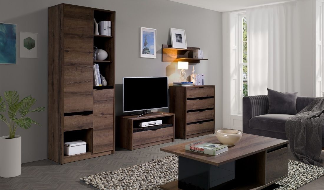 V každém moderním interiéru nesmí chybět dostatek místa pro relaxaci, zábavu s rodinou nebo přáteli a zároveň by měl poskytovat dostatek úložného prostoru. Proto je důležité vytvořit interiér tak, aby jste se cítili dobře, bezpečně a pohodlně. Vsadit bychom měli hlavně na funkčnost, variabilitu a kvalitu nábytku. Tento stylový nábytek je vyroben z kvalitní laminované dřevotřísky, okraje částečně zabezpečeny PVC hranou. Tento materiál je stálobarevný, snadno se čistí a je nenáročný na povrchovou údržbu. Díky výběru barevných variant je tento nábytek vhodný do jakéhokoliv interiéru.