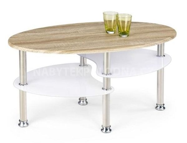 Konferenční stolek MEDEA - je moderní konferenční stolek v kombinaci skla, lamina a nerezové oceli. Dostupný v barvě bíla-dub sonoma.