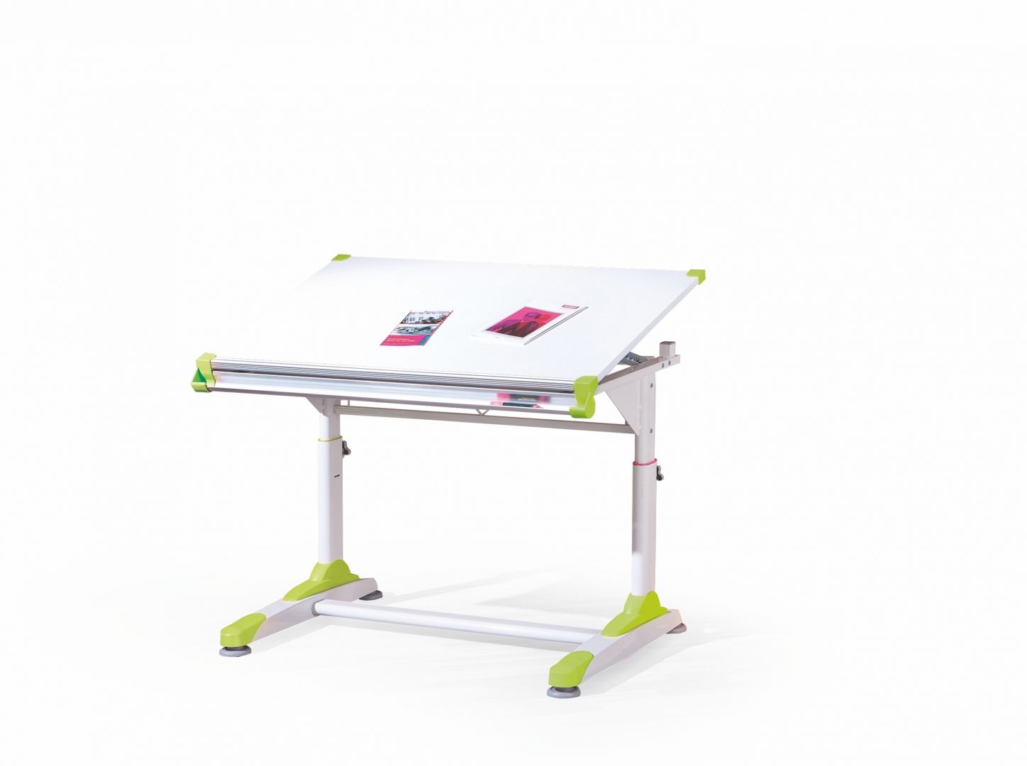 Dětský rostoucí stůl Collorido - je psací stůl s možností nastavení výšky a sklonu pracovní desky. Rostoucí dětský stůl je vyroben ve variabilní bílo zelené - růžové kombinaci.
