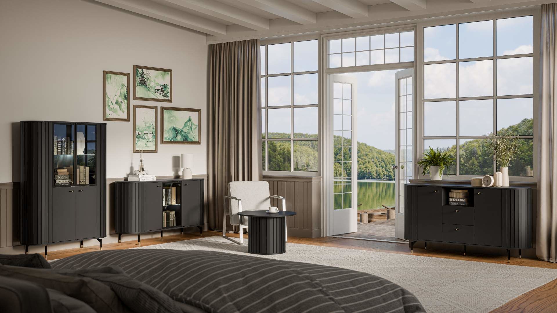 Vyzkoušejte originalitu s precizním řemeslným zpracováním v podobě moderní sestavy do obývacího pokoje ZANTE. Tato stylová sestava s konferenčním stolkem, vitrínou a komodami je díky své prostornosti a množství úložného prostoru praktickým pomocníkem v každém interiéru. Stylová nábytková sestava dodá vašemu interiéru zajímavý vzhled a zaslouženou pozornost. Díky praktické prosklené vitríně, budete mít vše přehledně uspořádané a nejkrásnější dekorace můžete vystavit v prosklené části. Lamino je tloušťky 16 mm. Tato moderní sestava do obývacího pokoje je dostupná ve dvou barevných dekorech a to černý mat a kašmír. Na vitríně a komodách se nacházejí designové detaily, které podtrhují celkový moderní vzhled tohoto moderního nábytku. Právě díky vnitřnímu uspořádání, ale také stylovému barevnému odstínu, je tato nábytková sestava vhodná pro vybavení moderního interiéru. Nábytkovou sestavu ZANTE lze zakoupit dle fotky a nebo jednotlivé díly variabilního nábytkového systému ZANTE samostatně.