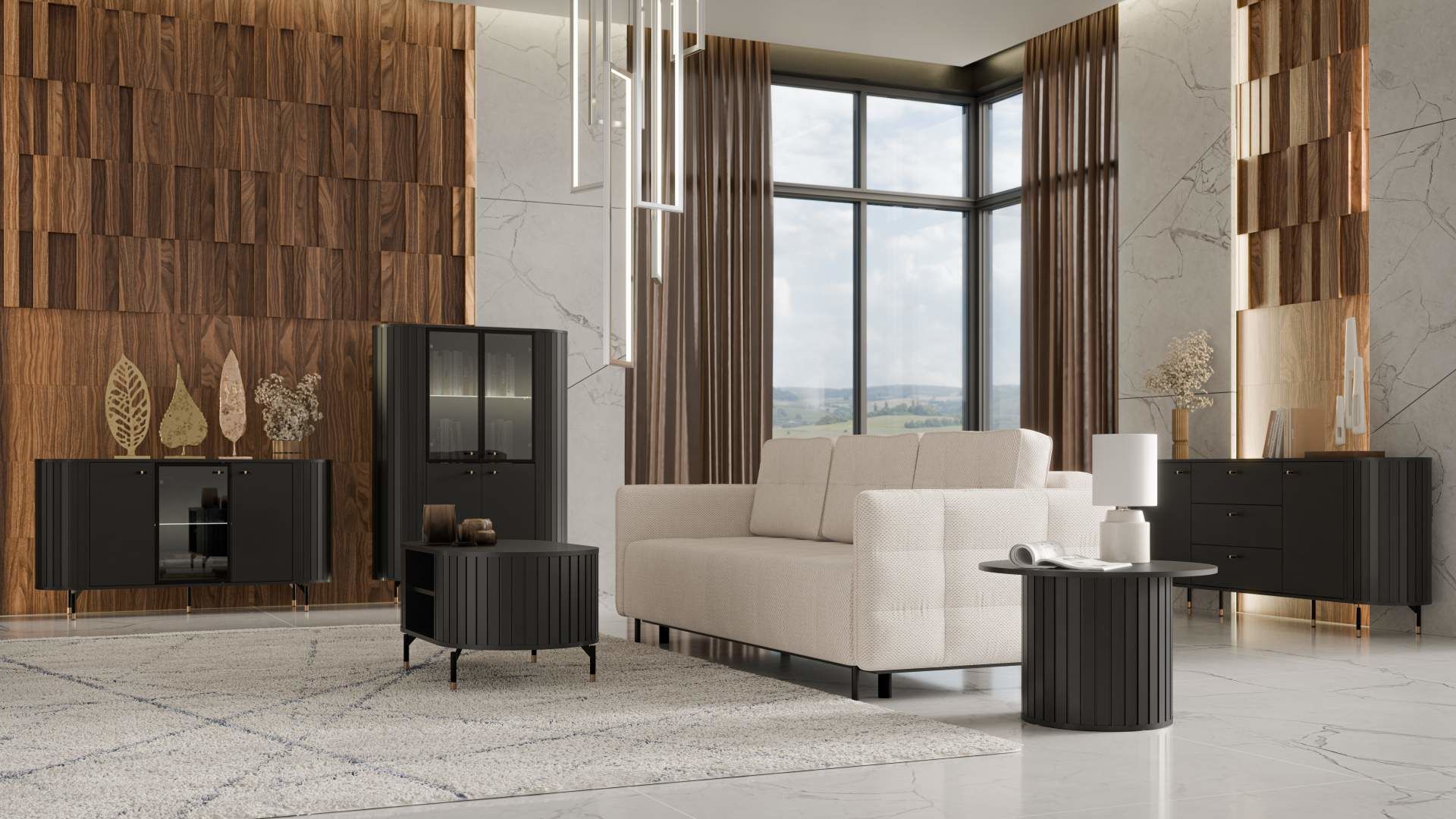Obývací pokoj ZANTE II - je moderní sestava do obývacího pokoje vyrobená v dekorech černý mat a kašmír.