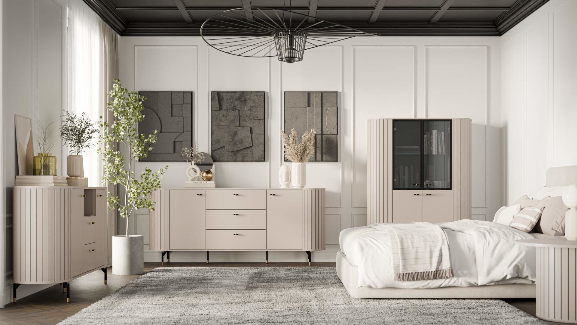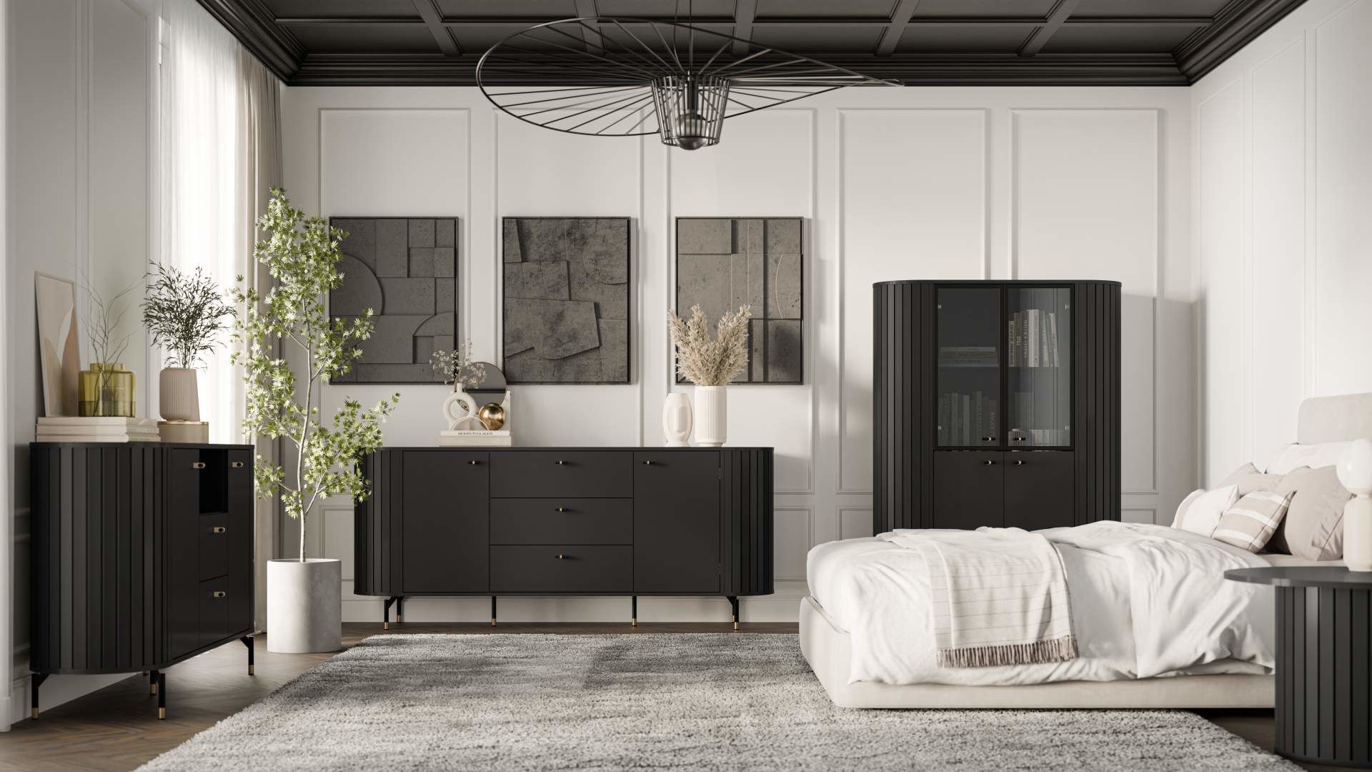 Sestava do ložnice ZANTE - je moderní sestava do ložnice vyrobená v dekorech černý mat a kašmír.