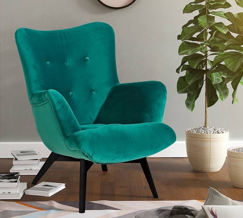 Křeslo SAFI - kvalitní pohodlné vyšší retro křesílko. Zaujme především zpracováním a ideálně zapadne do moderního obývacího pokoje jako doplněk. Na výběr z několika barev moření nohou.