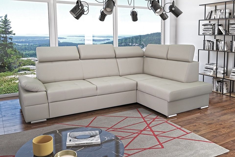 Rozkládací rohová sedací souprava RONALDO je elegantní a tvarově zajímavý nábytek, který zaujme svým vzhledem. Má krásné provedení a přináší nový lesk moderního designu pro váš interiér. Majitelé těchto sedaček u nich ocení zejména jejich výbornou povrchovou úpravu a maximální pohodlí díky masivním bokům a širokému sedu. Výplň sedáku tvoří vysoce kvalitní PUR pěna položená na pružinách Fallista tip B, tím je zajištěna vysoká životnost sedací soupravy. Konstrukce sedačky je vyrobena v kombinaci dřevotřísky a masivního dřeva a je ideální pro obývací pokoj jako domácí centrum pro odpočinek a relaxaci. Náleží k ní velký výběr potahových materiálů včetně omyvatelných. Vybraný potahový materiál uveďte při objednávce do poznámky, popřípadě nás kontaktujte. Vzorník pro výběr potahu sedaček je k dispozici i na prodejně. Rohovka je rozkládací na velikost spacího lůžka 125 x 196 cm. Je polohovatelná, má úložný prostor, který je vhodný na uschování peřin či dek a nebo jiných předmětů.