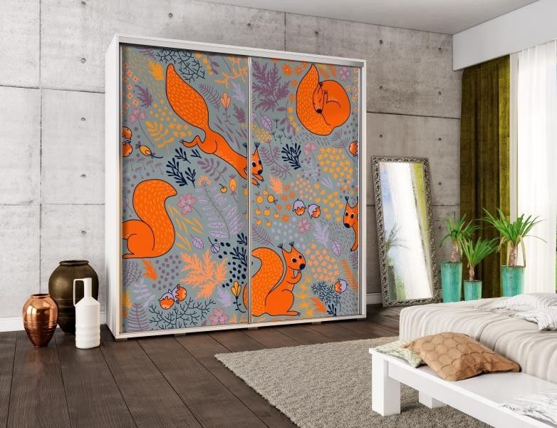 Šatní skříň PEM 205 veverka je vyrobena z lamina tl. 22 mm s ABS hranou a posuvnými dveřmi s kováním SEVROLL. Barevné dekory Bílá, Dub Sonoma, Kaštan Wenge, Švestka Wallis.