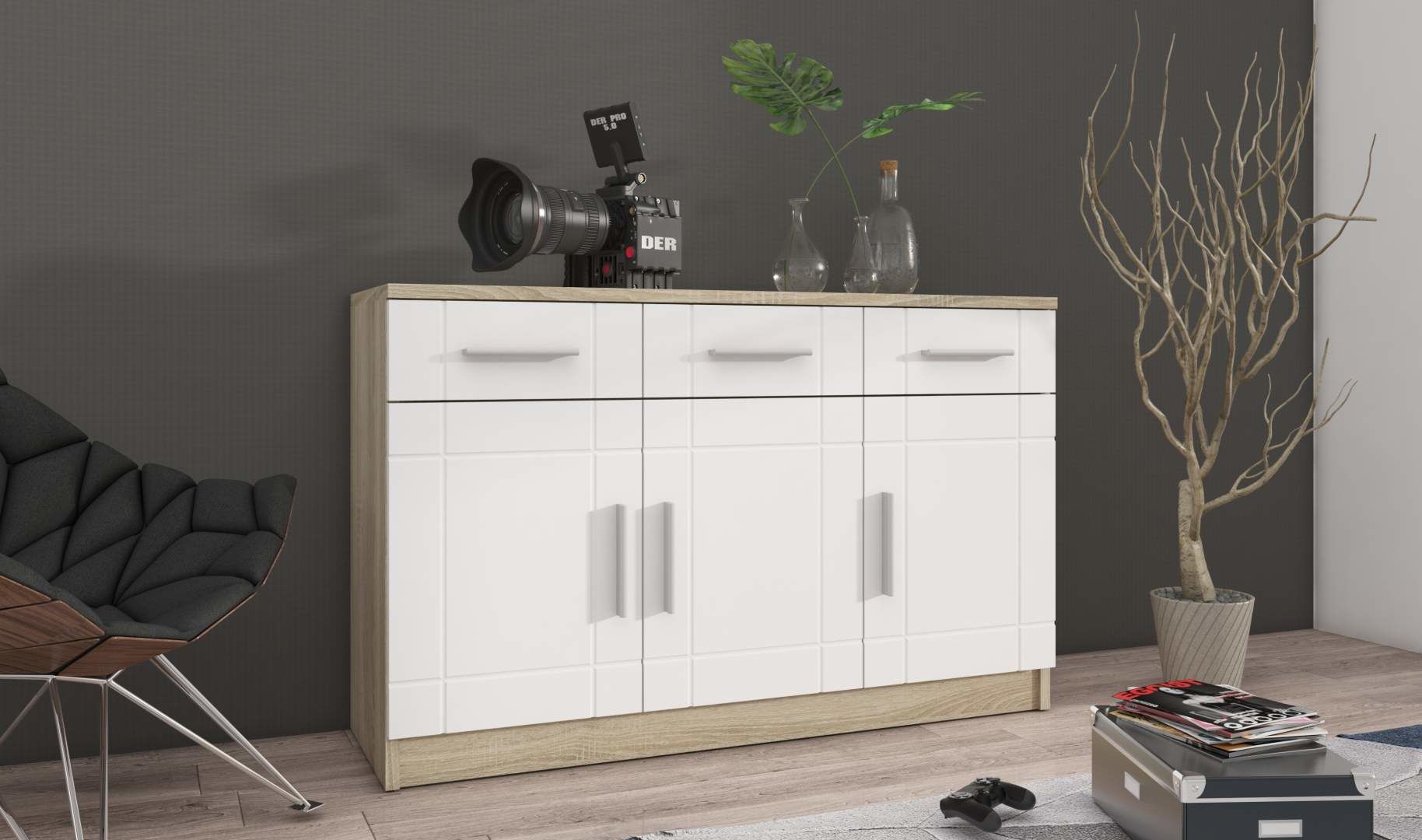 Vyzkoušejte originalitu s precizním řemeslným zpracováním v podobě moderní komody do obývacího pokoje PARIS. Tato kombinovaná komoda je díky své prostornosti a množství úložného prostoru důležitým prvkem v každé domácnosti. Stylová kombinovaná komoda dodá vašemu interiéru zajímavý vzhled a vystavený předmětům zaslouženou pozornost. Díky praktickým šuplíkům, dvířkám a polici budete mít vše přehledně uspořádané. Stylová komoda dodá vystavěným předmětům zaslouženou pozornost. Komoda je vyrobena z lamina, které věrně imituje reliéf dřeva. Lamino je tloušťky 16 mm s ABS hranou. Tato komoda je dostupná v oblíbeném barevném dekoru dubu sonoma, dub sonoma /grafit nebo dub sonoma / bílá. Celkové zpracování detailů podtrhuje moderní vzhled komody. Právě díky vnitřnímu uspořádání, ale také stylovému barevnému odstínu, je tato kombinovaná komoda vhodná pro vybavení moderního interiéru.