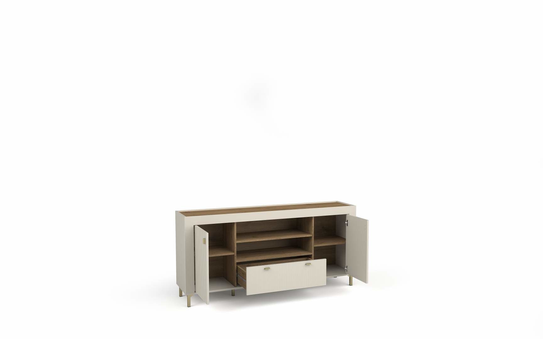 Unikátní kolekce MOSSA byla vytvořena s ohledem na nejvyšší standarty kvality a designu. Skříňový nábytek z kolekce MOSSA je nejen funkčním a praktickým úložným řešením, ale také elegantními prvky interiéru. Díky kvalitním materiálům a preciznímu zpracování zaručuje nábytek z kolekce odolnost, ale také jedinečný charakter, který odliší každý interiér. Zlaté nebo černé doplňky podtrhnou eleganci každého interiéru. Použitím teplých dubových desek dodalo celé kolekci charakter a hloubku. Kolekce je vytvořena v několika barevných kombinacích dub whisky / kašmír, dub whisky / černá a dub whisky / bílá. Systém MOSSA zahrnuje: komody, stolky, šatní skříně a pohodlné minimalistické postele. Tuto komodu lze zakoupit samostatně a nebo jako součást variabilního nábytkového systému MOSSA.