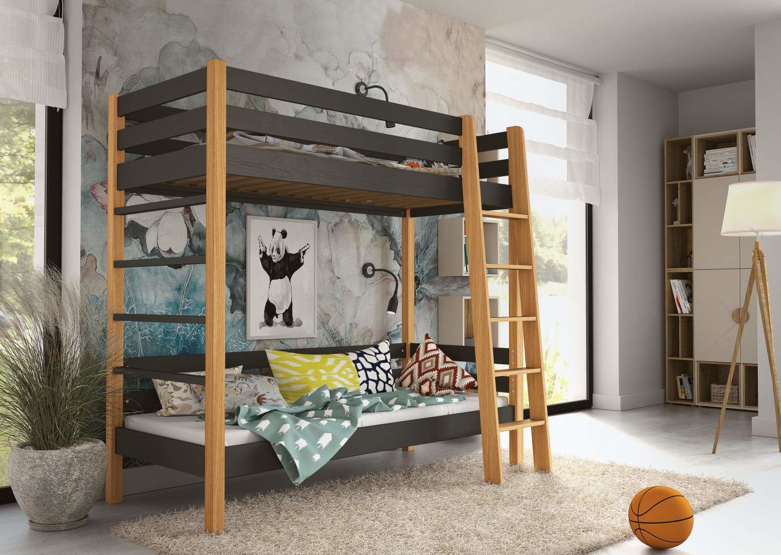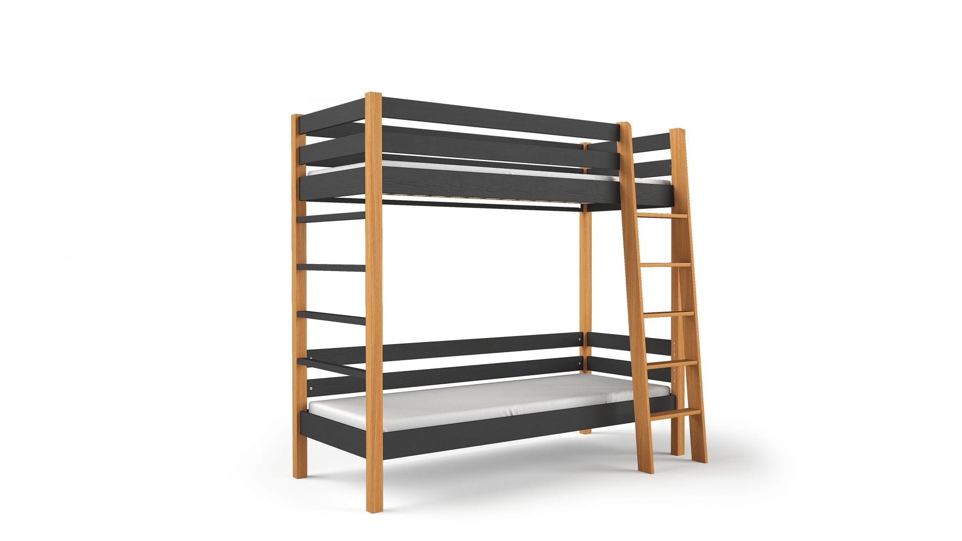 Patrová postel ZUZA - je patrová postel do dětského pokoje vyrobena z výběrového borovicového masivu. Barva moření: bílá, antracit.