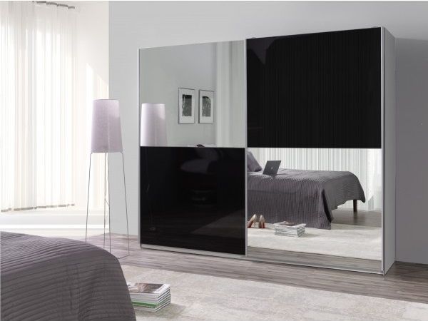korpus bílé barvy / zrcadla v kombinaci s černým leskem na dveřích