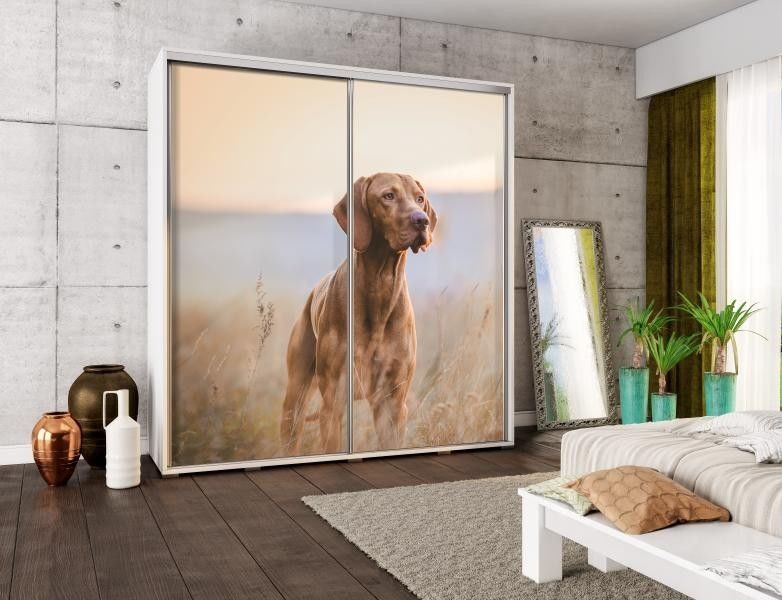 ŠATNÍ SKŘÍŇ PEM 205 pes vyrobená z lamina tl. 22 mm s ABS hranou a posuvnými dveřmi s kováním SEVROLL. Barevné dekorý bílý, dub sonoma, švestka a wenge.